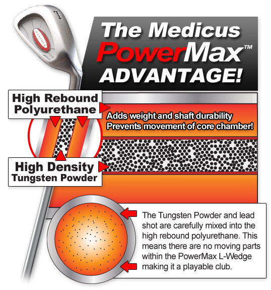THE SECRET: The Medicus proprietary shaft weighting system makes the PowerMax the best weighted swing trainer available. Head-heavy training clubs force you to pull or push shots due to improper wrist release. The PowerMax weight distribution is precisely measured in order to train the proper wrist cock/release again and again!